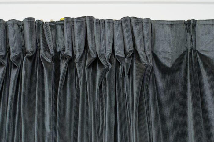 These are retro-classic curtains for a formal setting. A tape is sewn behind the top panel to form pleats. And hooks are inserted in the tape across each pleat for hanging and added support.