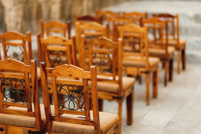 This is one of the most standard dining chairs, complete with a small seat and a tall back. Slat chairs have multiple strips of wood that run horizontally from one side to the other.