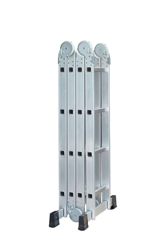 The ladder can change into various positions, including a stepladder, extension ladder, telescoping ladder, alternative staircase, and others. Another distinguishing feature of a multipurpose ladder is that multiple people can use it at the same time.