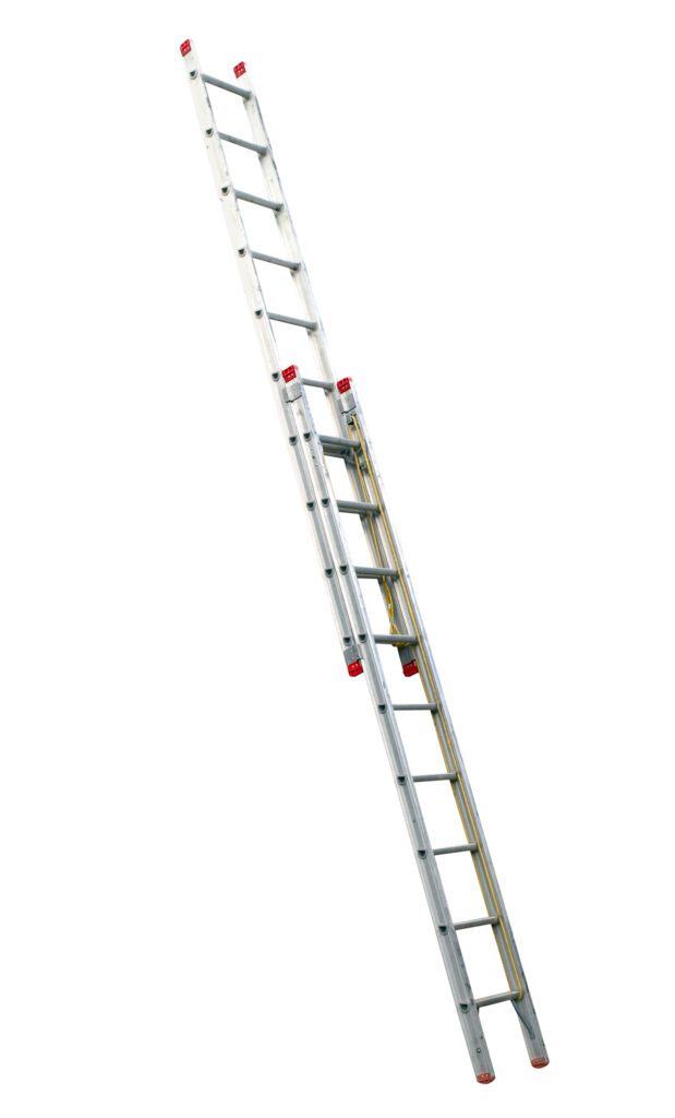 The extension ladder comprises two parts: the main part, known as the base, and the other, known as the flying part.