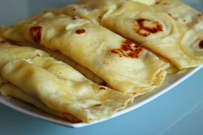 Chapati is a popular Indian flatbread and is usually grilled until you notice a freckled appearance. You can eat chapati bread with stir-fried vegetables or lentils or even make a “chapati roll.” Chapati bread uses whole-wheat flour and is cooked with ghee oil. You can also add butter to heighten chapatti bread’s flavor.