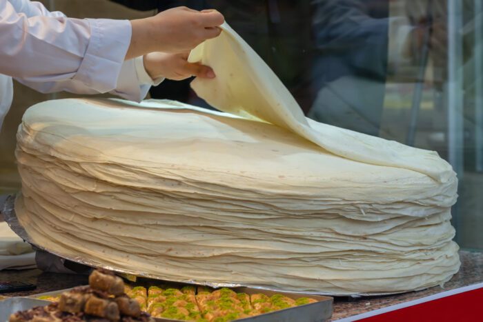 This paper-thin, unleavened bread is round in shape and originated in Turkey. Yufka bread resembles lavash bread and contains simple ingredients such as wheat flour, salt, and water. Some people also add vegetable oil to the dough.