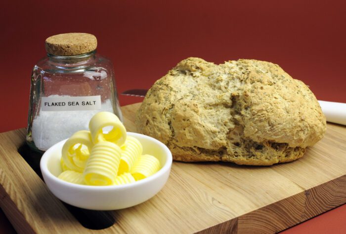 Soda bread is specialty bread from Ireland that uses baking soda instead of yeast. This type of bread has wheat flour, salt, buttermilk, and baking soda. There are many varieties of soda bread out there.