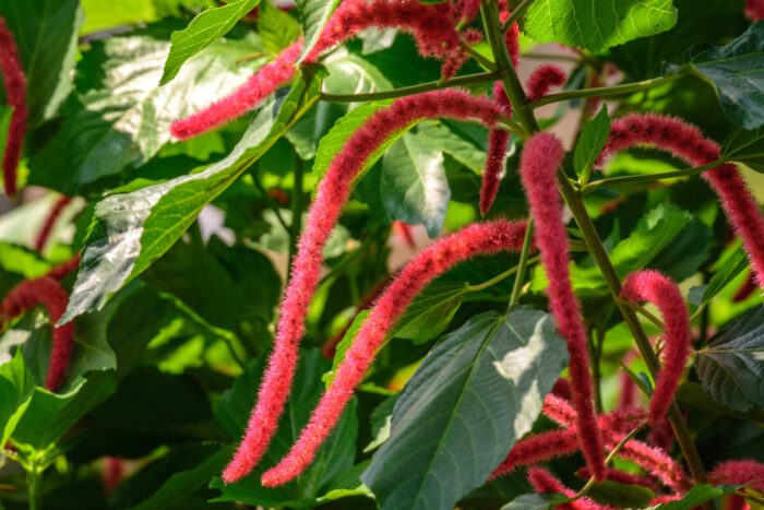 This tropical evergreen flowering plant is native to Malaysia and New Guinea. It produces soft, long, fuzzy flowers that resemble fluffy animal tails. For this reason, the plant also has the names’ monkey’s tail’ and ‘foxtail.’