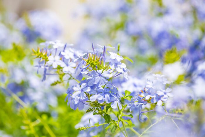 Plumbago is a flowering shrub hailing from South Africa. It has blue and white flowers that grow on vine-like branches. Also, this tropical plant is widely grown in Texas and Florida. In the right climate, plumbago can quickly grow up to 12 feet. And it is easy to care for and is drought tolerant. Lastly, it isn’t prone to disease and pests.