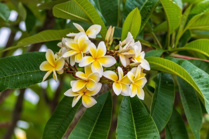 These flowers are widely grown in America’s cosmopolitan areas. They thrive with minimal maintenance and look stunning in float bowls all summer long. Frangipanis suit any type of garden and will add a tropical touch to it.